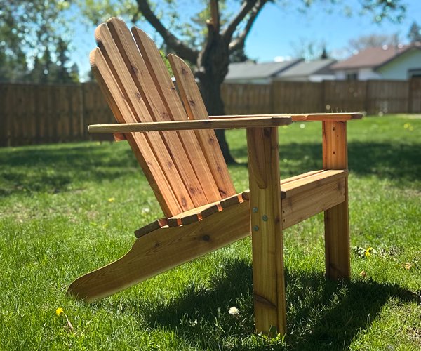 All Muskoka chairs are made with cedar, and a generous amount of tongue oil is applied to the wood for extra protection.